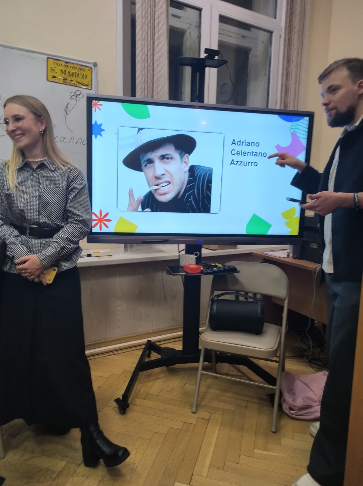 31 октября Российско-Итальянскому Центру исполнилось 25 лет. За это время он выпустил не одно поколение итальянистов. Поздравить юбиляра пришли выпускники, друзья, коллеги из других ВУЗов и Итальянского Института Культуры в Москве и, конечно, студенты, благодаря которым на вечере царила атмосфера радости и творчества: четвертый курс посоперничал с учащимися ВГИКа, сняв короткометражный фильм о своем опыте обучения в Центре, а второкурсники на несколько минут превратили учебную аудиторию в сцену, на которой нашлось место знаменитым итальянцам от Данте до Феллини.